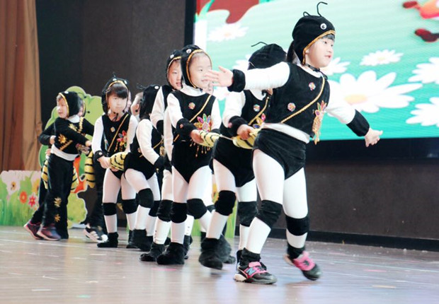 经过老师、孩子们一个多月的努力排练,正式演出开始了,这次表演邀请了小朋友们的家长和邻园的园长、领导们前来观看。小演员们身着靓丽的表演戏服,头戴精致的礼帽头饰,在音乐声中快乐的翩翩起舞,随着音乐起伏灵巧的变换队形,大胆的进行艺术表演;不断博得台下观众们阵阵喝彩。