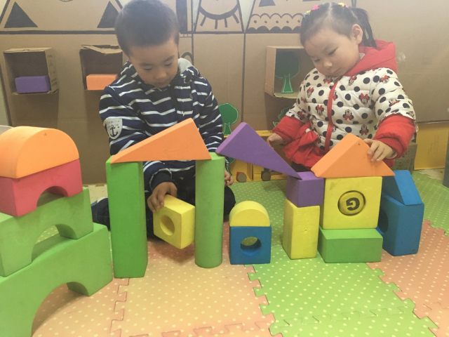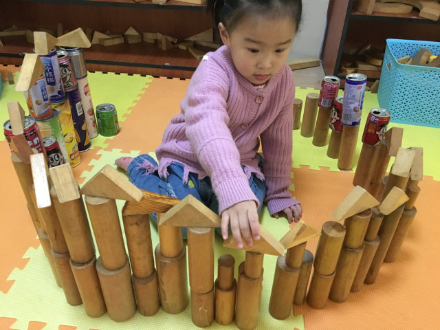 在建构游戏中,采用了创设情境、提供丰富的材料等多种方法,引导幼儿利用积木、插塑、砖石等材料,进行建造、插接,让孩子们在发展动手能力和建构技能的同时,感受到合作游戏的快乐。