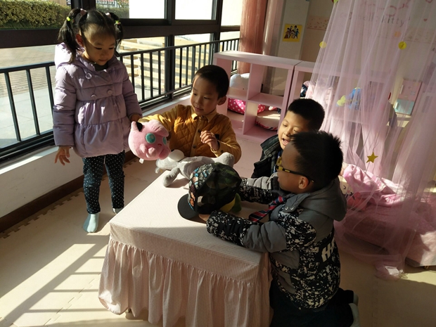 娃娃家看似小,实则装着每一个孩子们的“心”。通过活动,一是让孩子在愉快的环境中模拟了生活实景,二是满足了幼儿对自己心里的“家”的向往;三是提高了幼儿间交往能力,更好的促进了幼儿的身心发展。