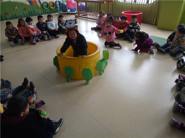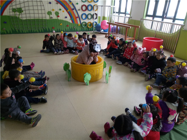 活动中,教师以大灰狼破坏游乐场所设施为故事背景,将大灰狼引入陷阱,每位幼儿手持海洋球一起抗战大灰狼,活动过程中幼儿的参与积极性非常高,幼儿专注投入,玩得尽兴,体现了幼儿的自主性,游戏室内到处充满孩子们的欢声笑语。