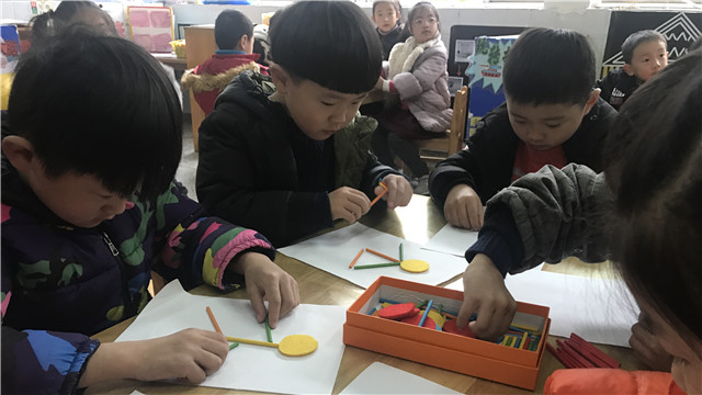 本次创意建构活动,孩子们在活动中感受到材料的特点,尝试用木棒拼摆不同的运动姿势,不仅满足了幼儿展现自我的愿望,提高了创造力,更让孩子们体验到了造型过程的成功与快乐。(宋璇)