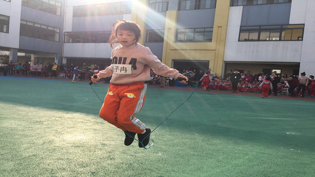 开幕式过后进行的是本次运动会的比赛项目,首先开展的是跳绳,各邀请了10名家长做裁判,其他的小伙伴当拉拉队员。比赛开始了,只见跳绳小选手们一个个都不甘示弱,纷纷拿出了自己的看家本领,目视前方、认真跳绳。班级集体项目《蜈蚣竞走》、《集体运水》孩子们互相团结,冲向终点。紧接着是充满趣味性的亲子游戏比赛,《沙包乐》、《坦克向前冲》、《翻滚吧!轮胎!》在亲子游戏中,孩子们个个兴致勃勃、高高兴兴地参与比赛;家长们人人返老还童、摩拳擦掌地要争取第一。比赛场上时时爆发出快乐的笑声,观众席上的家长和孩子们不断地加油喝彩,不断地助威鼓劲。而赛场上的孩子和爸爸妈妈一起奋勇争先、努力拼搏,展示着更快、更高、更强的体育精神。大家的欢呼声沸腾了整个运动场,团队的凝聚力也在此刻达到了顶点。