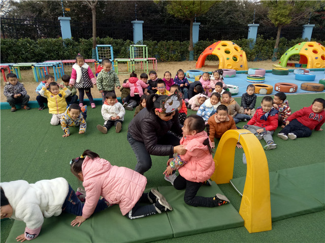 老师们结和本班孩子的年龄特点和发展水平,从热身活动、游戏活动和放松整理三大部分入手,精心设计了兔妈妈带着兔宝宝钻过山洞去摘果子的情节;游戏活动中,孩子们的积极性都很高,尤其是在出现了“碰到铃铛,大灰狼发现”的活动环节中,还会有有孩子提醒身边小朋友“趴低一点,不要碰到铃铛”等一系列互动,活动过程中充分调动了幼儿主动性。