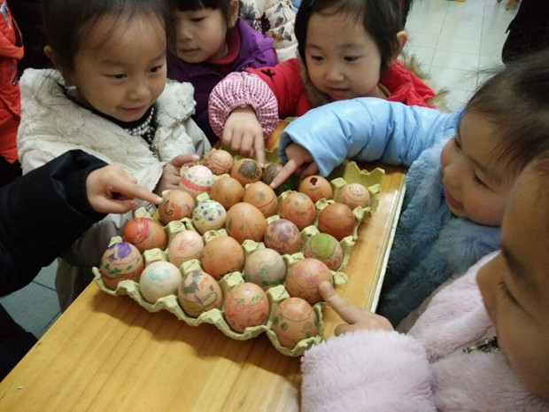茶山幼:巧手绘制五彩蛋 乐趣无限笑开颜