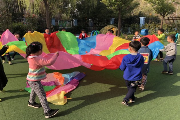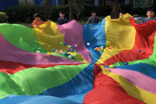爱玩是孩子的天性,以游戏为主的幼儿园生活才是孩子的乐园,孩子的天堂。为了推动幼儿园体育活动的开展,下午,丽华第二幼儿园中班幼儿开展了“好玩的彩虹伞”户外活动。