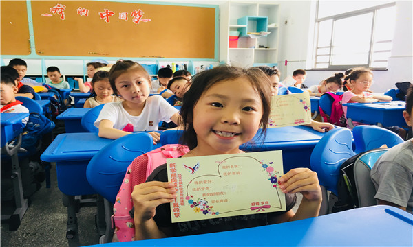 教室里传来欢快的乐曲——《快乐的歌》,学唱一首励志之歌也是开学日的一项小任务。解小娃们欢乐地打着节拍,一张张小嘴巴里跃出梦想之符,身体情不自禁地随着韵律而舞动。