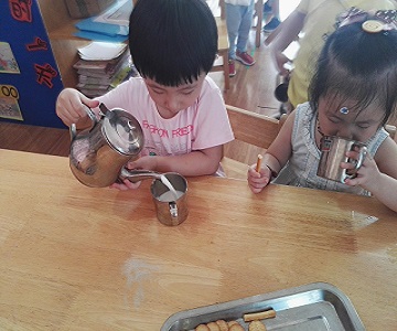 幼儿餐点活动是幼儿园一日生活中最基本的环节之一,它重在培养幼儿良好饮食习惯和进餐能力,对幼儿健康成长起着重要的作用。本学期,彩虹幼小班幼儿的自主生活实践与探索的活动中,选择了其中的自我服务早点的重点关注和突破的环节来开展。为此,我们以幼儿发展为本的理念为指导,从培养幼儿的自主性和能动性的需要出发,在幼儿点心活动上进行了一些探索尝试。