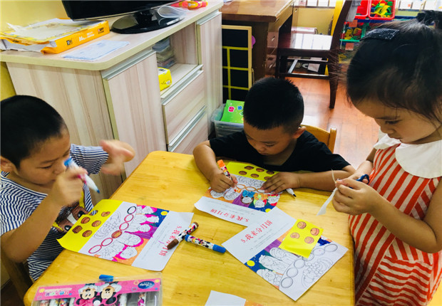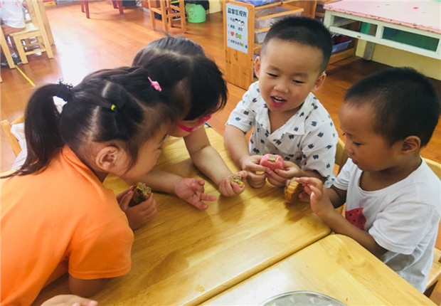 区域活动中孩子们通过剪一剪、贴一贴、画一画等形式绘制着《我来分月饼》,“你一个我一个,中秋节团团圆圆!”张梓含一边剪一边贴。“你看月饼是圆圆的我要给它画出漂亮的颜色和花纹!”轩轩迫不及待地跟黄宇轩交流。瞧他们体验到了同伴间的友爱,真真切切地感受了浓浓的中秋情。
