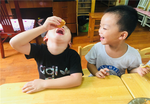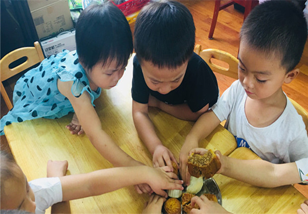 孩子们自发带来月饼和大家一起分享,在温馨暖暖的氛围中。你一口、我一口,喜气洋洋,在品尝香甜美味的同时,更享受着节日带来的快乐。