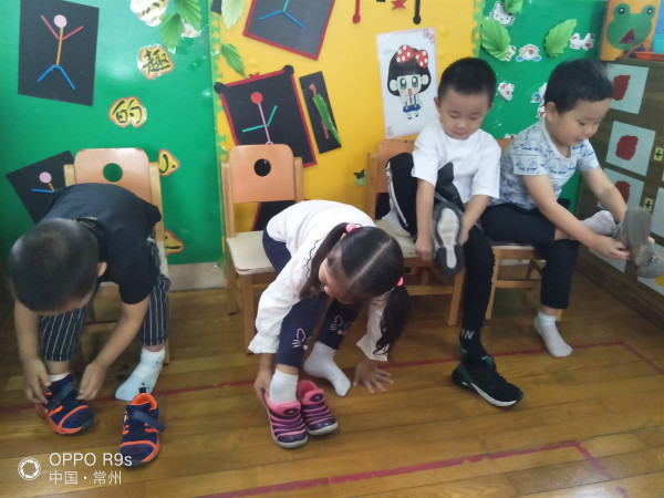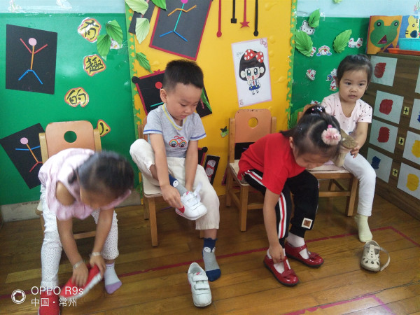 为让幼儿学会穿鞋子的简单生活技能,提高幼儿自我服务意识,常州市翠竹幼儿园小班开展了“穿鞋子”的比赛,通过比赛鼓励幼儿尝试自己穿鞋子,提高幼儿的动手操作能力。