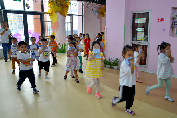 所有的安全教育都不能是纸上谈兵,所以我们得来一次真正的安全疏散演习。上午9:40左右,孩子们正在专心地上课,忽然听到紧急的警报声,各班老师迅速按紧急预案的疏散线路带领幼儿拿起湿毛巾,捂住口鼻,猫着身子,分多道楼梯迅速且有序下楼。很快孩子们集中到操场安全地带,教师迅速地清点人数,并向总指挥报告。整个疏散活动只用了2分多钟。我们的孩子们很厉害吧!