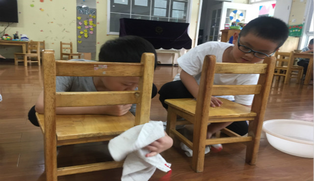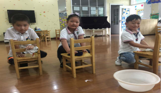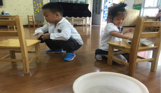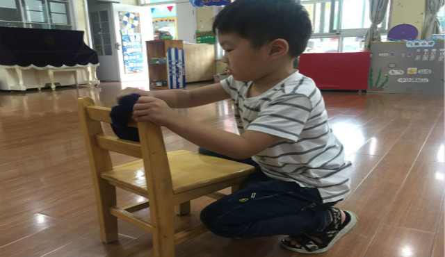 如今的孩子娇生惯养,学习简单劳动的机会很少。为进一步提高宝宝的生活自理能力,学会自己的事情自己做,今天,我们大三班的宝宝们学会了擦椅子的方法。活动中宝宝们认识椅子各部分的名称,然后边念儿歌边学习擦椅子的方法,并能按顺序正确擦自己的小椅子,如“先抹桌子面,再抹桌子背,横档抹一抹,最后抹椅腿”。最后宝宝们还比一比谁的小椅子更漂亮,知道以后要好好爱护自己的小椅子,多给自己的小椅子勤洗澡。