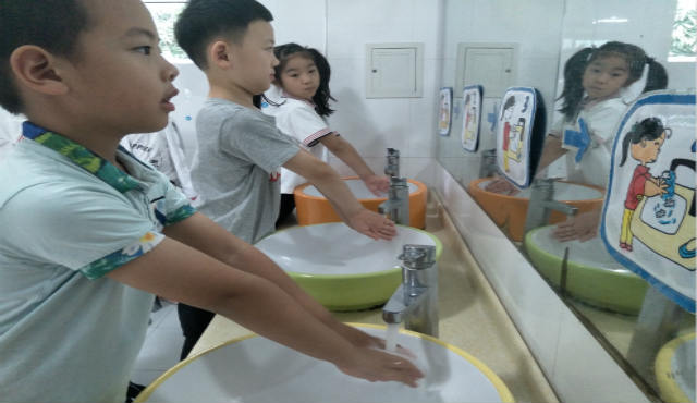 为了更好的培养幼儿的手卫生意识和推动幼儿逐渐养成勤洗手和正确洗手的好习惯,大风车幼儿园大三班组织幼儿参加了有关“手卫生”的系类活动,活动包括:洗手六部法的学习、手卫生亲子活动、洗手儿歌的学习、手游戏等。通过一系列手卫生的活动,大风车幼儿园大三班的幼儿勤洗手、讲卫生的意识大大提高。