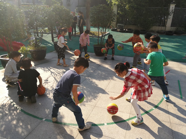 《纲要》明确指出,“幼儿园应该把促进幼儿的身体健康和保护幼儿的生命放在工作的首位”。为了促进健康活动的有效开展,增强幼儿体质,培养幼儿热爱运动的精神,近日,新世纪幼儿园大班组开展幼儿“花样拍球”活动。