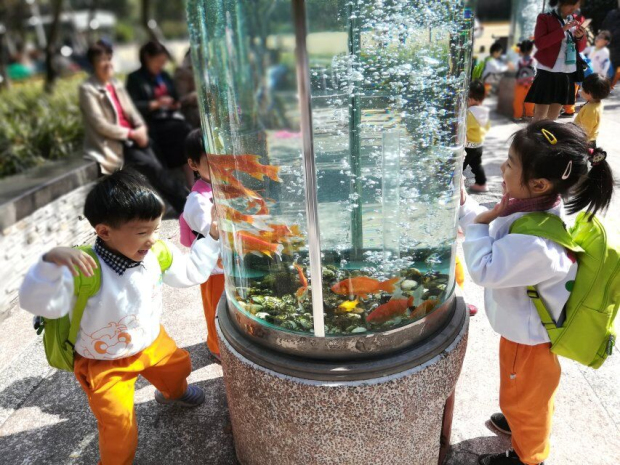 看,小朋友们在老师们的陪伴下,排着整齐的队伍,迈着轻快的步伐,沐浴着清新的空气漫步来到了红梅公园。他们时而瞪着好奇的眼睛四处张望,看着秋叶飘落,赏着菊花盛开,脸蛋上漾起了惬意的笑容;时而沿着石径缓缓向前走,发现里面长着一些郁郁葱葱的松树和柏树,还有许多不知名的参天大树和美丽的花朵;时而驻足在观鱼廊前,欣赏鱼儿的嬉戏;时而在草坪上追逐着泡泡,和伙伴们分享着美味的食物;孩子们享受着阳光,感受着美丽的大自然,享受着大自然带给我们最美好的礼物。孩子们尽情地呼吸着新鲜空气,沐浴着温暖的阳光,感受着秋天的美景,只听见孩子们的欢笑声在空中回荡。可爱的萌娃们一路上不断吸引着路人们的目光。