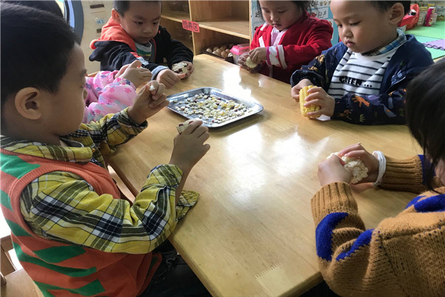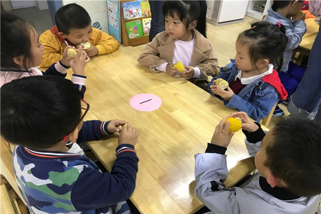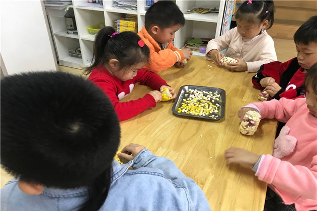 孩子们都看到过玉米,吃过玉米,但是他们从未体验过亲自剥玉米的辛劳。这一切对大多数小朋友来说是第一次体验。在活动前小朋友们都认真聆听着老师讲解怎样剥玉米,心中充满着喜悦与劳作的渴望。