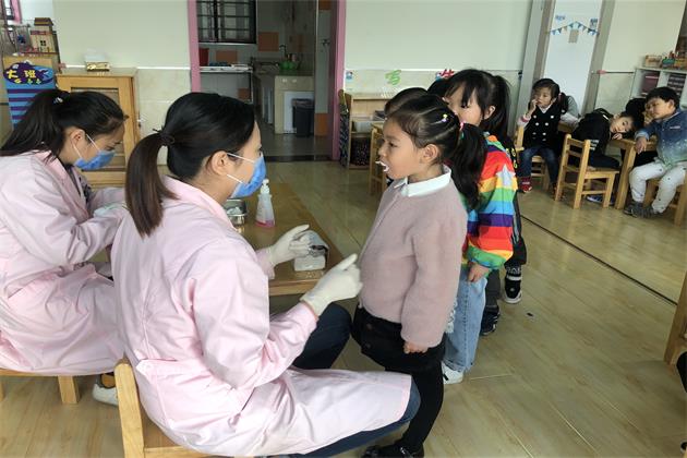 检查中,医务人员认真仔细地为幼儿查看牙齿,亲切地与孩子们交谈,帮助他们消除心中的不安。同时他们还对幼儿进行爱牙知识的教育,让孩子们知道了如何保护自己的牙齿。各班教师则配合医务人员精心组织,让幼儿做到有序排队,安静等待。检查后,幼儿园保健老师配合检查人员对幼儿患龋情况进行了汇总登记。整个活动高效、顺利,所有幼儿在预期时间内得到有效检查。