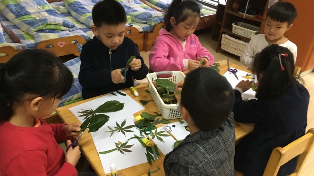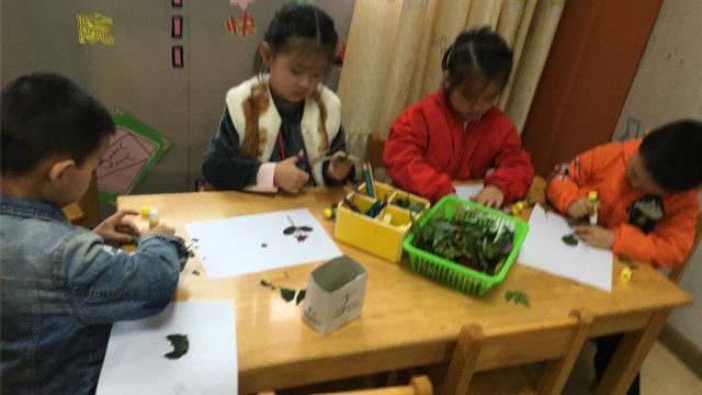 一场树叶拼贴画活动让孩子们调动了孩子们的想象力和创造力,同时也使孩子们走进大自然,亲近大自然。