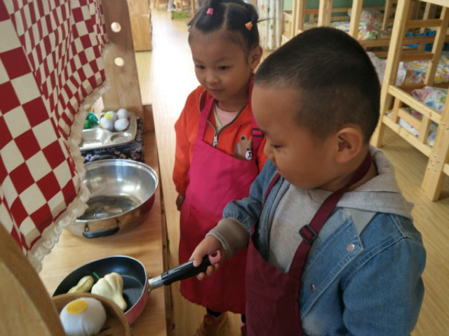在阅读区,孩子们主动的选择图书,细心观看图画故事,孩子们能安静地互相谈论图书,并且互相讲述一个个动听的小故事呢!能利用玩偶、布景、图片等将图书情节运用于扮演活动中;在角色区“乐餐厅”里,孩子们有模有样的模仿这厨师“炒”出了不同花样的菜品,幼儿自主扮演自己喜欢的角色,并有一定的情节,并以所扮角色与人交往,语言使用贴切;在美工区“小巧手”里,孩子们用超轻泥土捏出了一个形象生动的小动物,在成功的同时还不忘跟同伴们炫耀一番等等。
