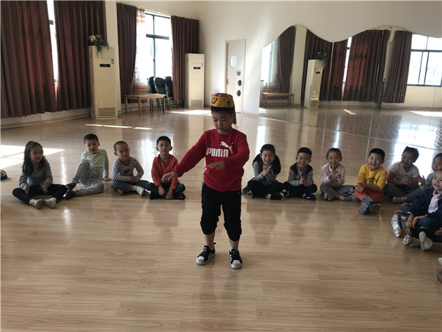 愉快的结束完游戏,孩子们脸上都是一副意犹未尽的表情,这个游戏既能锻炼孩子们的反应能力,又能帮助孩子在集体中大胆表现自己真是受益无穷!让幼儿在游戏中学习到了规则意识,了解了各民族的特色,还展现了各民族的舞蹈风采。