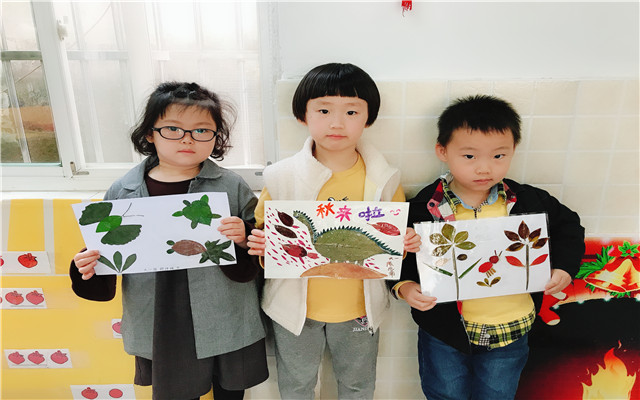 此次活动孩子们乐于参与,在室外寻找自己的‘宝藏’,欢乐乐开怀!在活动中,孩子们充分发挥想象,金黄淡绿、形状各异的落叶经过孩子们的想象和创造,变成了一幅幅精美的树叶画。有“海盗船”、“幸福的一家”、“可爱的小田鼠”、“美丽的风景”等等,每一幅作品都栩栩如生。增进对大自然的热爱。