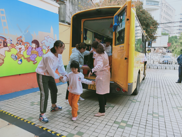 演习开始,孩子们安静整齐地坐在车内,突然听到一阵急促的敲门声,原来是有人想闯入车内,随车老师立即发出信号:“有人要闯进车里!孩子们不要慌乱,有序撤离”,随即迅速指挥孩子们撤到应急车门处。与此同时,保安师傅控制住坏人,校车司机快速拉响警报并打开车门,在随车人员的引导下,小朋友们迅速有序地下了校车,到达安全区域后,随车老师及时清点人数,整个演练过程用时不到2分钟。活动结束后,老师还跟幼儿强调,在车上遇到任何突发事件的时候,必须保持冷静,听从司机和随车老师的指挥,迅速逃离危险地带,以确保生命安全。