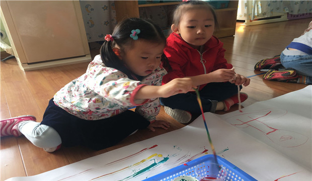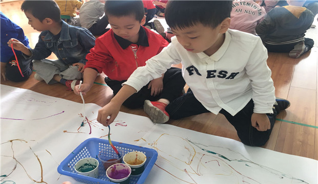 在活动中,孩子们自由的玩起了颜色,瞧孩子们创作得多专注啊!充分发挥着自己的想像表现各种绳子的特征。一幅幅作品充分展现出孩子们惊人的想象力和独特的构思,也体验着绘画过程给大家带来的成功和乐趣。让幼儿在自由自在表现过程中体验快乐的、游戏般的感受,在不经意间培养绘画技能。