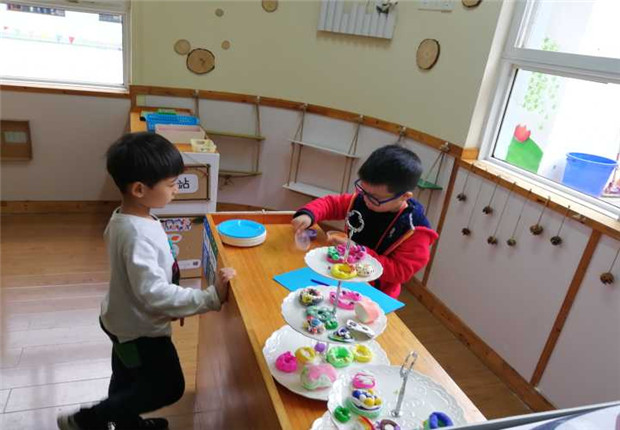 老师们结合大中小班三个年龄段的特点及兴趣爱好,精心设计、巧妙布局,有效利用空间,创设出一个个有浓浓节日氛围、富有童趣、贴近生活、独特新颖的区角环境。在区域游戏中,老师们投放了丰富而层次分明的区域材料,孩子们自主选择不断地尝试、探索、体验成功和快乐,教师在活动中注重观察指导,引发兴趣,发现问题,适时引导幼儿总结经验、积累知识,在宽松愉悦的交流情境中源源不断感受幼儿自主、自由、自发的游戏乐趣。班班有特色,处处有亮点,小小区域体现了老师们的智慧,如:建构区的孩子们搭天安门、垒长城、建大坝;表演区的小导演们根据光线的变化设计着小小舞台,不亦乐乎;益智区的孩子在编制着手链手串;生活区的孩子在磨豆浆、榨果汁、烤面包。在角色游戏体验中,孩子们在游戏中交往,在交往中收获,在收获与分享中体验无穷的快乐。
