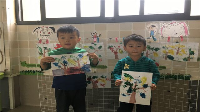 活动中宝贝们不仅认识了许多树叶,还和这些树叶宝宝们来了一次“亲密接触”。他们仔细观察树叶的形状和叶脉,有的透过阳光观察树叶,“老师老师,看我的银杏叶好漂亮”“哪里漂亮呢?”“像一把黄色的扇子。”孩子们选择喜欢的树叶和颜色,涂一涂,印一印,各种各样的树叶在画纸上绽放出了五颜六色的图案。