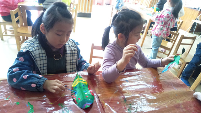 孩子们兴致勃勃地从家里带来了种子,兴高采烈地播种,观察。小朋友种的山芋已经枝繁叶茂,菠萝也绿油油的…许是觉得教室里的绿色不够,孩子们又纷纷从家里带来了各种各样的绿植。有绿萝、吊篮、珍珠兰…...地上的落叶孩子们也没有浪费,他们用自己灵巧的双手,做成了树叶花环。把树叶装饰成了各种各样好看的作品。树叶上有蓝蓝的天空、飞翔的小鸟、美丽的草原和羊群。自然角里还有南瓜、丝瓜、松果、桔子、稻谷……