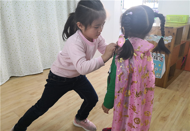 表演游戏对于中班孩子来说,是一种新奇又有创意的游戏活动,在表演游戏中,孩子们可以充分发挥自己的想象,用现有材料打扮自己,并努力去营造快乐的氛围,在换装、表演中与同伴交往并获得快乐体验。