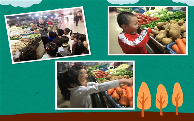 “我带来的是胡萝卜,它是长长的、橘黄色的,它吃起来甜甜的......”这是小朋友们在介绍自己从家里带来的蔬菜;“菜市场里有许许多多的蔬菜,跟着老师一起去瞧一瞧吧!”,这是社会实践活动《逛菜场》 “我要闻一闻”、“这个花椰菜可真大!”这是自然角的蔬菜展览会……