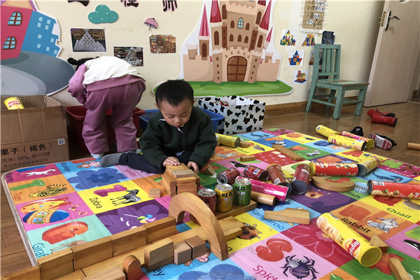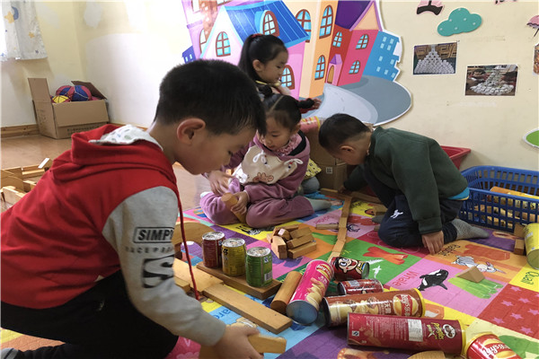 别小看建构游戏中的一个小小的积木、长长的可乐罐,小朋友们通过动手操作,把一个个零散的材料通过自己的想象和愿望。我们一起来看看小朋友的表现吧!专心的眼神,你搭我讲,一步一步建造出自己的作品。他们专注的眼神,那种成就感和满足感是无法形容的。虽然材料有限,但是他们认真的样子十分有趣。