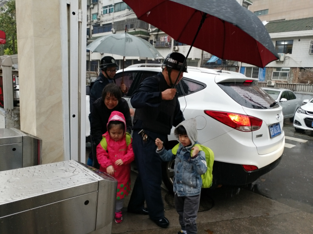 最近阴雨连绵,老师和保安师傅为孩子们撑起洒满爱意的雨伞,站在风雨中,任凭雨水打湿自己衣服、鞋子,伞总会偏向孩子的那边。伴随着孩子们“老师,早上好!”的声声问候,老师及时回应着:“早上好!请刷卡!”.声声问候传递出了幼儿园浓浓的爱意,老师们的拳拳爱心感染了所有的家长和孩子。瞧,家长们在老师的感召下也自愿加入到队伍里,为孩子们撑起雨伞走廊,暖暖的微笑伴随着雨滴融入每一个人的心间。