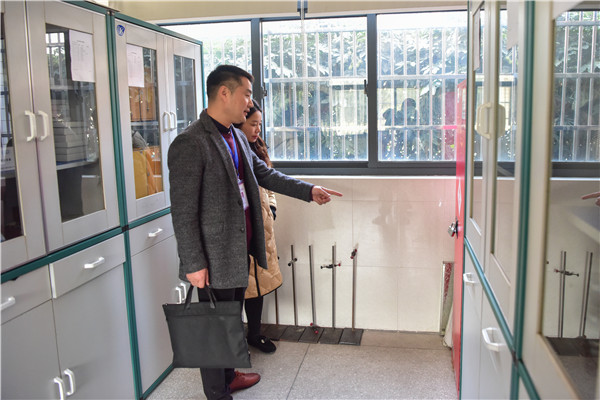 在金东旭校长、金建瑛和阚亚云副校长的陪同下,蒋科一行巡视了校园环境,查看了疫情防控相关的台账资料,特别关注了师生员工的一人一档行踪记录和体温监测,并对学校食堂、科学实验室、消防安全设施、学校门卫等地做了重点查访。金东旭校长还就学校开学工作作了具体汇报。两位领导对学校相关工作落实情况表示满意,同时就进一步细化有关工作提出了宝贵的意见和建议。