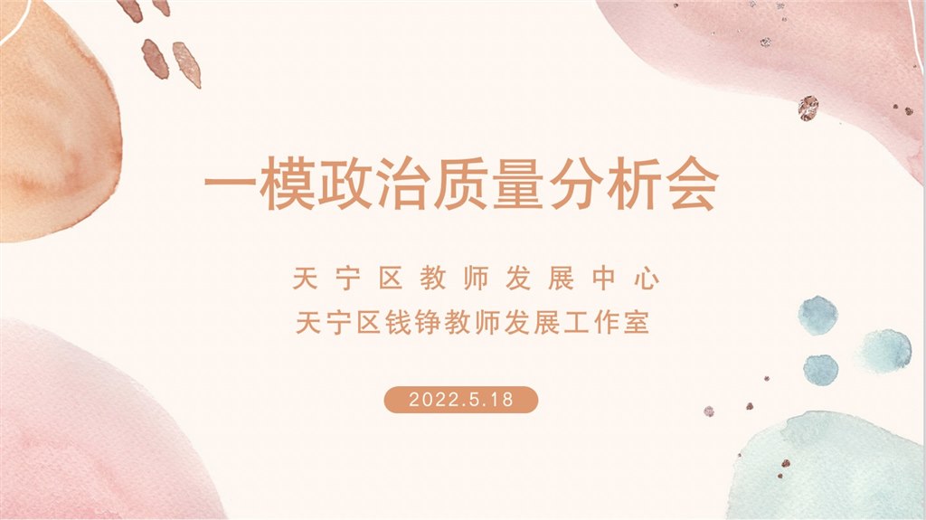为了对我区九年级道德与法治一模考试质量进行精准分析,提高中考二轮复习的针对性和实效性,加强校际间中考复习工作经验的交流和分享,5月18日上午,天宁区教师发展中心组织召开了九年级道德与法治一模质量分析会暨钱铮教师发展工作室活动,天宁区各初中校九年级道德与法治老师和工作室成员共同参加了会议。