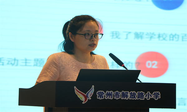 戴彩娥主任以《百拾校庆,我为解小代言》为题,介绍了秋季课程方案,通过百拾校庆,我最想——?这个核心驱动问题,利用项目化学习方式,开展年级自主课程。在百拾校庆之际用校史精神激励和鼓舞解小师生与学校共同成长,主动参与校庆活动,见证学校发展的重大时刻。