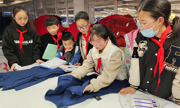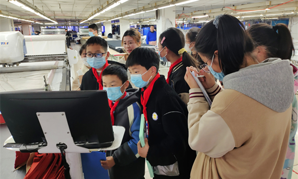 3月16日下午,常州市雕庄中心小学职业研究小组的同学们来到老三集团,开展参观车间、体验工作和采访全国劳动模范李承霞的活动。