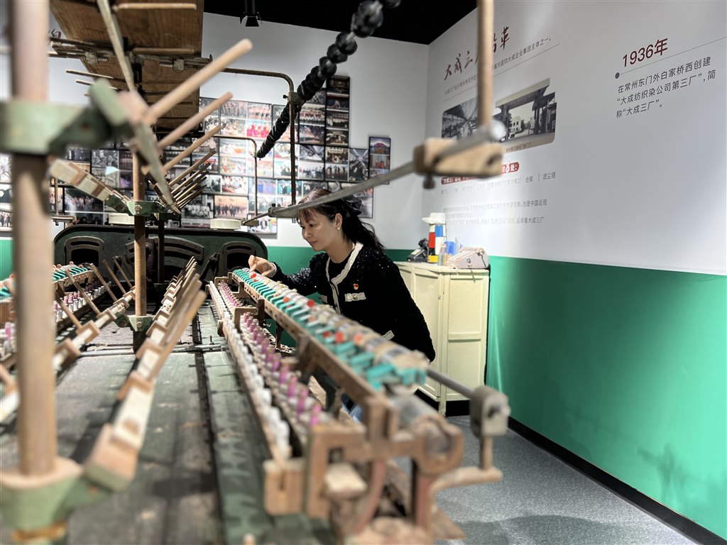 大家沿着古运河畔慢行步道行进,穿梭在工业风格的建筑之中,来到了依托大成三厂旧址建成的传承中华纺织工业历史文化的常州纺织博物馆、桑麻名人纪念馆。