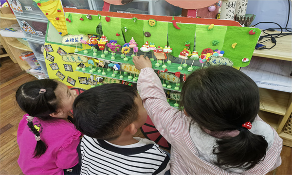 小四班的孩子在老师的引导下,大胆表达自己爱吃的、不爱吃的食物名称及原因。认识了一些常见食物的种类,了解了健康饮食需要合理搭配。随后,孩子们在老师的鼓励下,用可塑性强的超轻粘土进行艺术创作。他们用揉,搓、捏、切等方法,将不同颜色的粘土进行合理组合,制作出了形象生动、色彩鲜艳的各类美食,共同完成了“美食巴士”的创建。