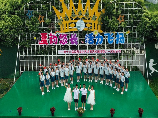 6月1日上午,东青实验学校一至八年级的孩子和家长一起,齐聚学校常青藤梦想舞台前,参加“夏韵悠长 活力飞扬”第十六届校园文化艺术展演暨六一庆祝活动。