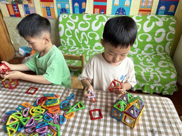 孩子们根据自己的想象、创造去摆弄拼搭磁力片作品,并从中发挥自己的想象力和动手能力。在搭建、拼插的过程中提高了创造力和表现力。还对四肢和及眼睛的协调性进行潜移默化的提高,促进幼儿的身体协调性发展。更为重要的是,在玩乐的过程中需要同伴间的相互配合,这也为孩子的社会性发展提供了机会,让他们的在园生活更加充实、多彩!