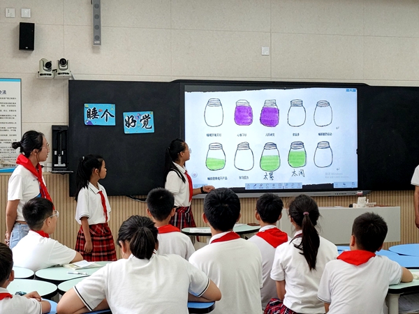 北环小学金静老师用新颖的设计、真实的课堂,为大家呈现了《睡个好觉》主题班会活动。课堂上,金老师通过多样的活动形式:观看视频、做小调查、给情绪瓶涂色、制订专属睡眠床垫等,向大家展示了一节别具一格的睡眠管理研究课。师生之间、生生之间亲切自然的沟通,让这节班会课更加接地气,也增强了师生间的情感共鸣。