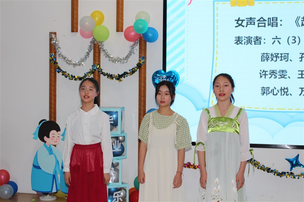 毕业不是休止符,是对明天的呼唤,是充满希望和奋斗的新起点。孩子们尽情高歌,绽放美丽的青春。六(2)班的林于钧带来的精彩武术表演,六(3)班薛妤珂、孔素雯、许秀雯、王恩语、郭心悦、万星佳合唱《起风了》, 六(1)班吴紫菱表演民族舞《向云端》,六(2)班汪颖璐、六(4)班张新怡带来激情四射的拉丁舞。