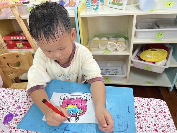 在2023年9月19日,中二班开展了“生日快乐,我的朋友”主题活动。早上来园时,满满拿着一个袋子,多多好奇地凑过去看了看,“你这里面是什么呀?”“这是我妈妈给我做的生日蛋糕,因为今天我生日。”孩子们纷纷围了过去,“哇,你的蛋糕好漂亮呀。”“你的蛋糕是用扭扭棒做的,你的妈妈也太厉害了吧。”满满开心的说道:“这是我跟妈妈一起做的,我还会用粘土做蛋糕呢。”“你可以跟我们说说是怎么做的吗?”豪豪问道,“好呀,我们先把两个圆圆的蛋糕底盘拼在一起,然后用我们喜欢的颜色在蛋糕底盘上面用扭扭棒绕好,我还会用粘土做草莓呢,草莓放在蛋糕上面酸酸甜甜的,可太好吃啦!”满满回答道。“我也好想要一个漂亮的蛋糕呀。”天天说道,“我想要做一个杯子蛋糕,杯子蛋糕里面都是奶油,里面还会有好多的巧克力,上面可以放我最爱吃的火龙果。”琳琳说道,“我想要一个瑞士卷,瑞士卷里面也有好多奶油,还有好多的味道呢。”“我最喜欢草莓,如果我做蛋糕的话,我要好多红红的草莓酱。”孩子们你一言我一语,向身边的伙伴介绍自己喜欢吃的蛋糕。
