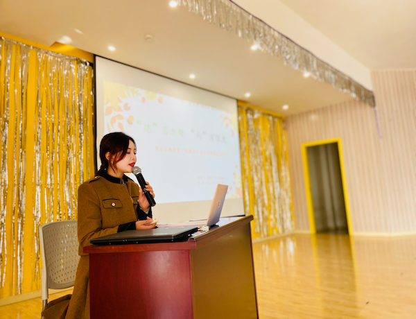 现场观摩结束后,丽华二幼的马美婷老师开展了《“建”有乐趣 “构”有深度——基于主题背景下的建构区域环境创设》微讲座 ,讲座中,马老师结合本园的实际案例,从从“聚焦区域 科学布局”、“聚焦材料 合理投放”、“聚焦主题 资源利用”这三个方面进行了介绍和分享。引导教师在建构区投放活动材料时,要了解材料所隐含的不同教育功能,随着幼儿操作水平的提高,有计划地调整操作材料投放的策略,将幼儿发展目标与这些材料的教育功能紧密结合起来,发挥材料的作用,促进区域活动的发展不断丰富和深入,进而促进幼儿经验的不断丰富与提升。