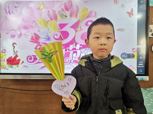 2024年3月8日大一班的小朋友们在教室里,制作了折纸花束,为自己的妈妈,奶奶或者外婆们送上一份特别的礼物。小朋友们精心制作着花束,将自己的想说的话都写在了贺卡上面,大家都很开心,兴致勃勃的参与着活动,脸上都洋溢着幸福的笑容。