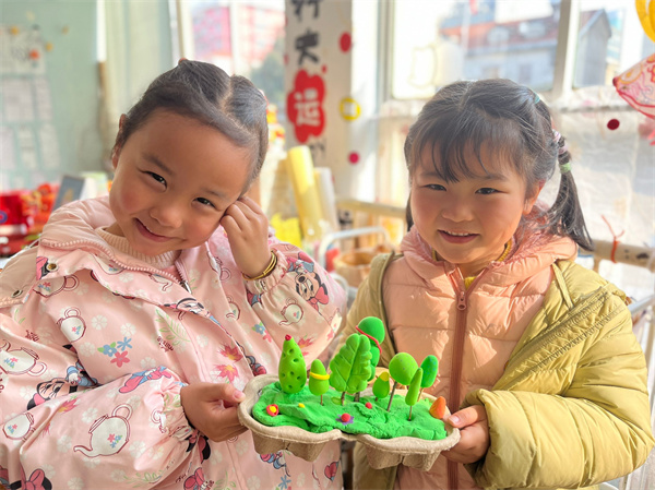 笔下一抹绿,根植在心中。孩子们观察幼儿园的每一株花草,迫不及待地用手中的画笔、七彩的颜料、百变的黏土,记录下所有美好生命的姿态。盼望着春暖花开、盼望着爱的传递……孩子们亲手挑选彩泥、制作树苗装扮自己的专属小花盆。在蛋托上放上厚厚的彩泥当做草地,在草地上捏出不同的树木。把蛋托装饰成绿意盎然的样子。