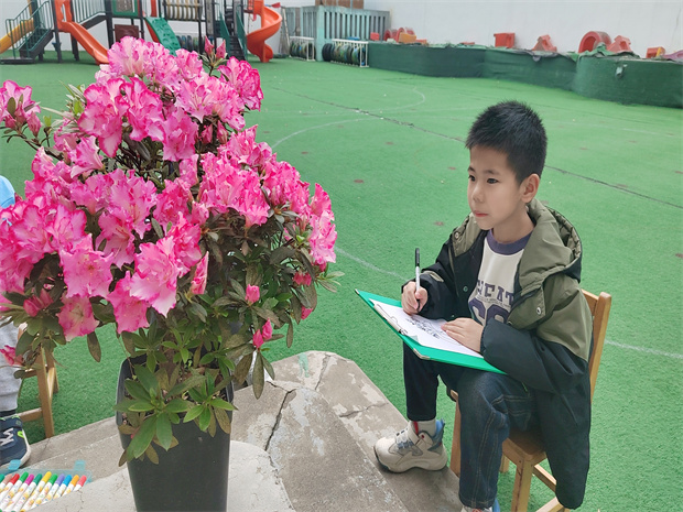 “写生”活动没有统一的教材,没有刻板的教师示范作品,幼儿可以活动、可以交流。不仅提升了幼儿对美的感受力、观察力和表现力,还愉悦了心情,增进了友谊。(撰稿人:胡斌 审核人:杨亚男)