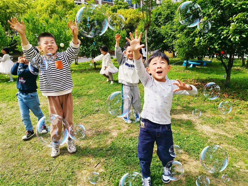 野餐派对开始啦,孩子们一边分享着美食,一边和同伴们聊着最近发生的趣事。泡泡机里喷出的泡泡一下吸引了孩子们,伴随着悠扬的乐曲,孩子们与色彩缤纷的泡泡一起共舞,个个小脸蛋儿上洋溢着灿烂的笑容,整个幼儿园都沉浸在欢乐的海洋中。